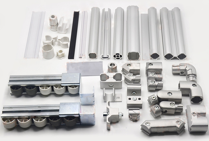 三代铝合金精益管的接头配件采用纯铝材料按ADC12标准加工而成。三代铝合金精益管件是工业标准构件发展的趋势,其具有环保耐用、轻便柔性等特点。